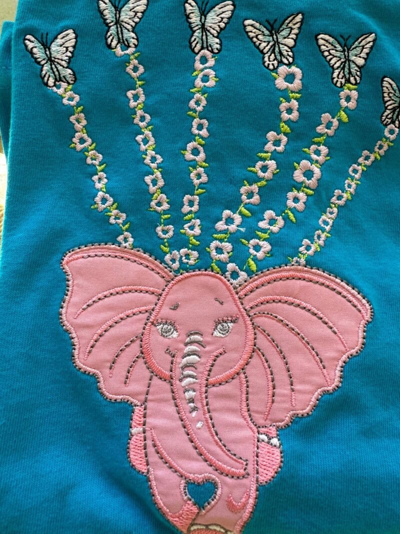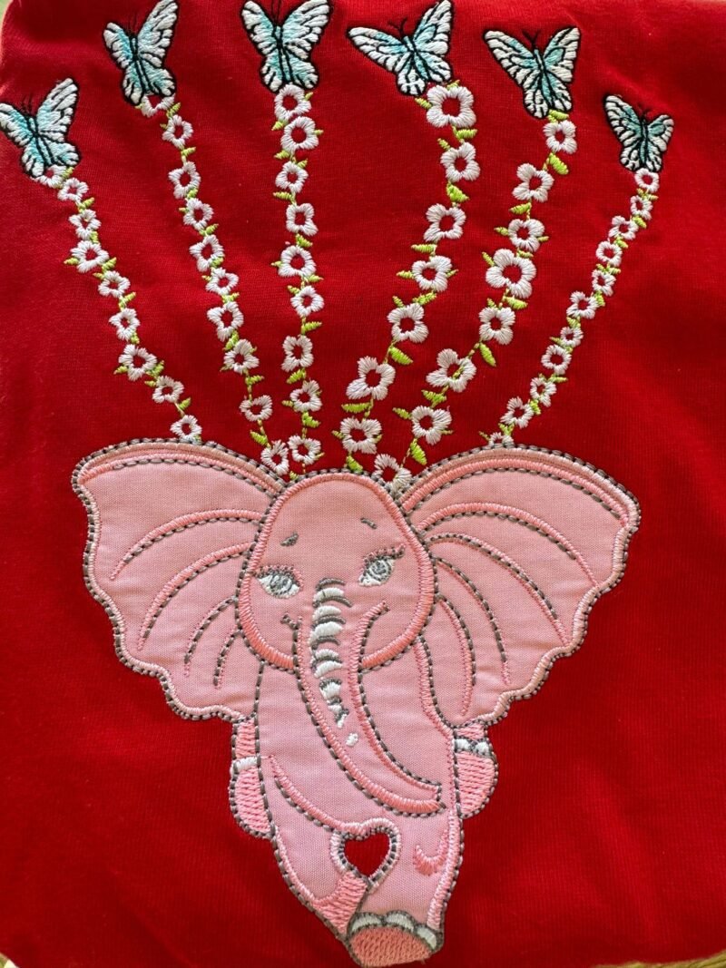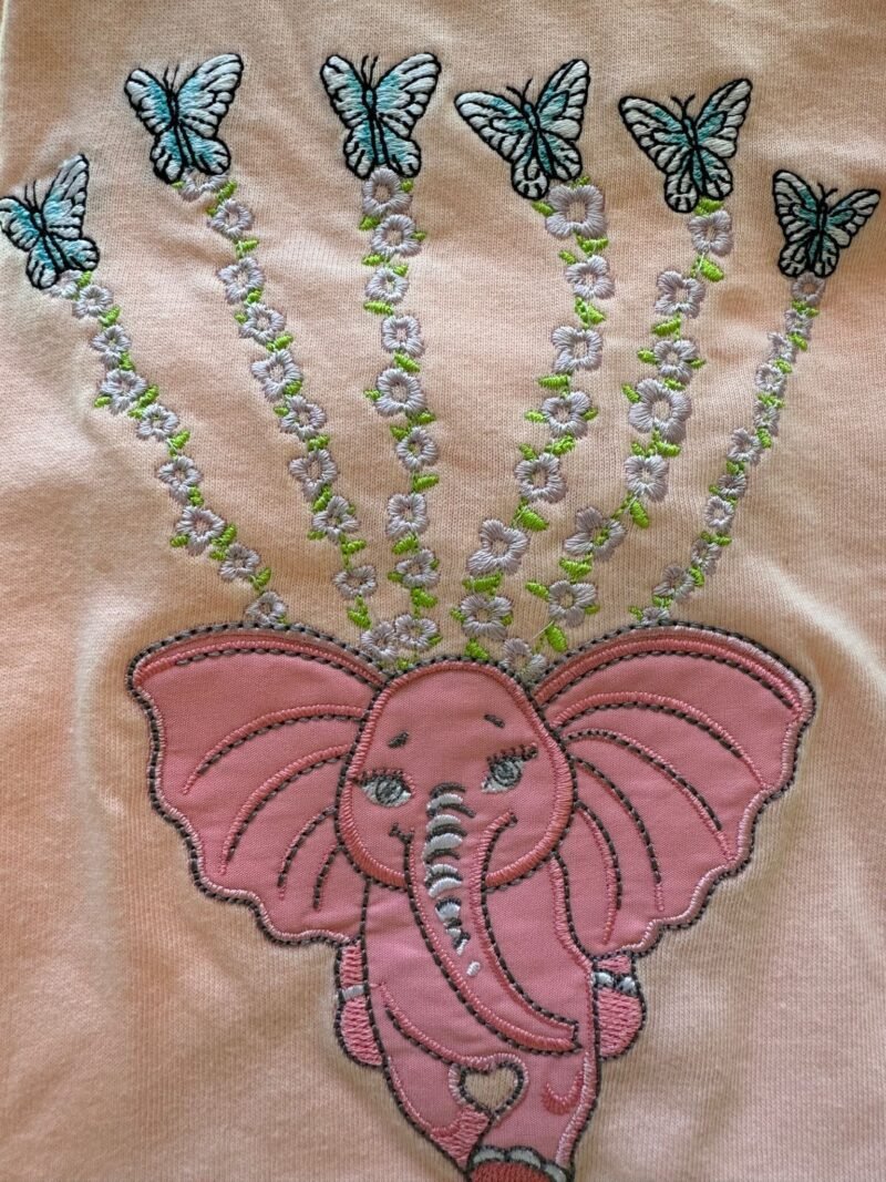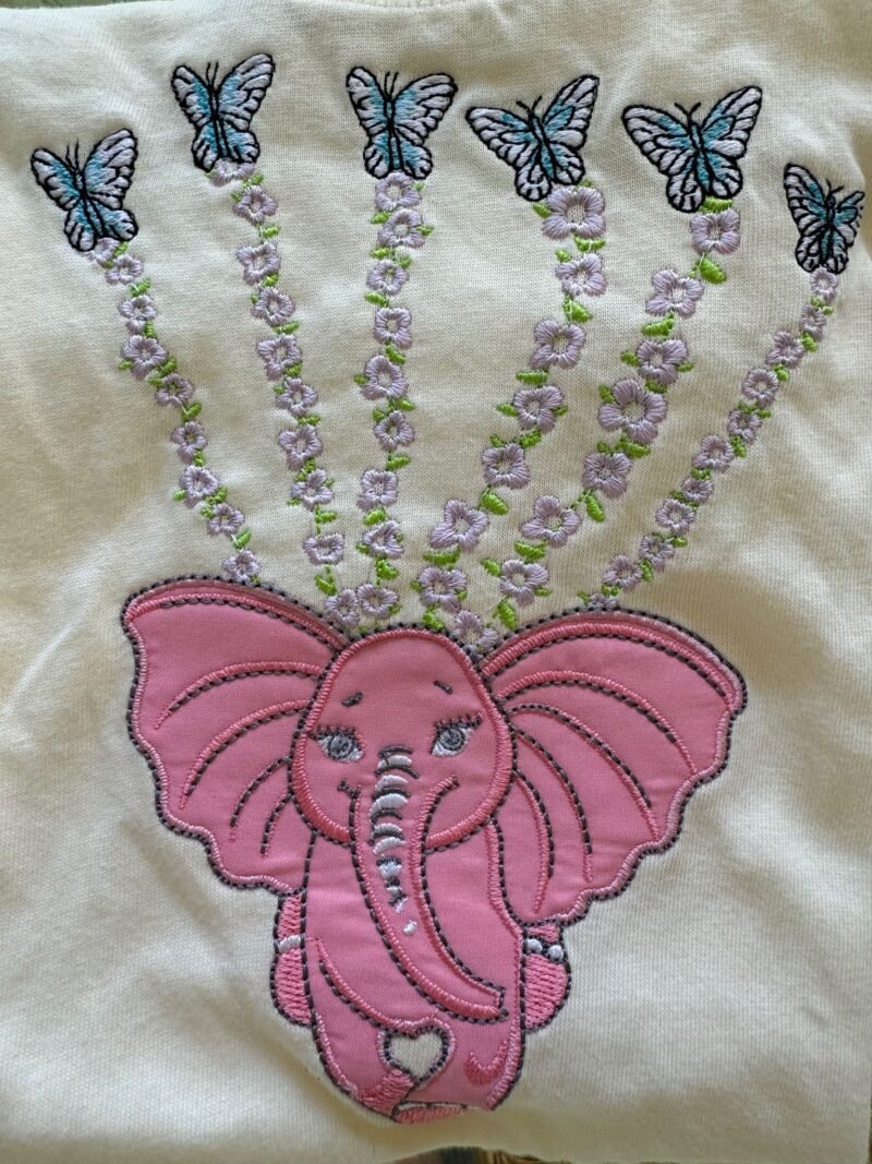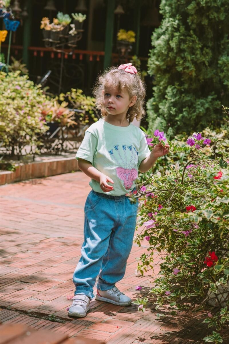 Let her wear a story that floats with grace, beauty, and imagination. This soft, breathable cotton tee features the exquisite embroidery of our Weightless Pink Elephant—a gentle symbol of empathy and imagination—suspended in midair by delicate floral vines, each bloom ending with a luminous Morpho butterfly.